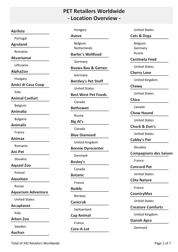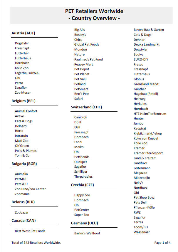 Die einzigartige Datensammlung über den Zoofachhandel in Europa und Nordamerika. Mit unentbehrlichen Informationen für erfolgreiche Marketing-, Vertriebs- und Außendienst-Aktivitäten. Loseblattsammlung inkl. Ordner und Datendownload