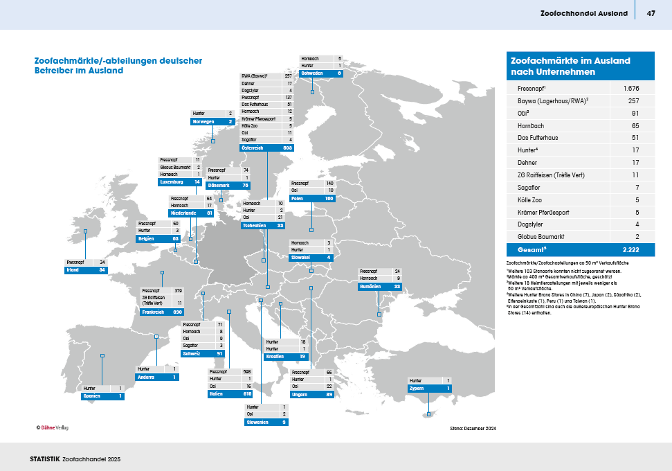 Die Statistik Zoofachhandel liefert aktuelle Zahlen, Statistiken und Analysen über den Zoofachhandel in Deutschland, Österreich, Schweiz per 31.12.2024.
